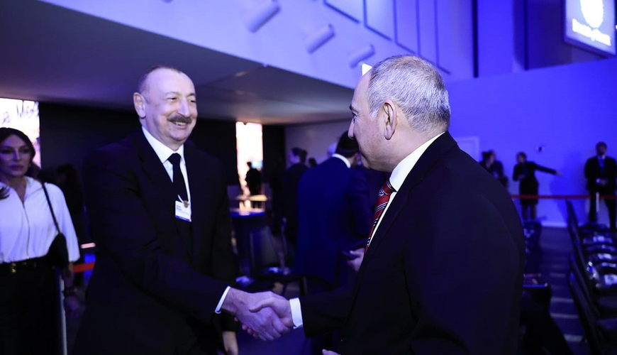 İlham Əliyev Davosda Paşinyanla ayaqüstü söhbət etdi